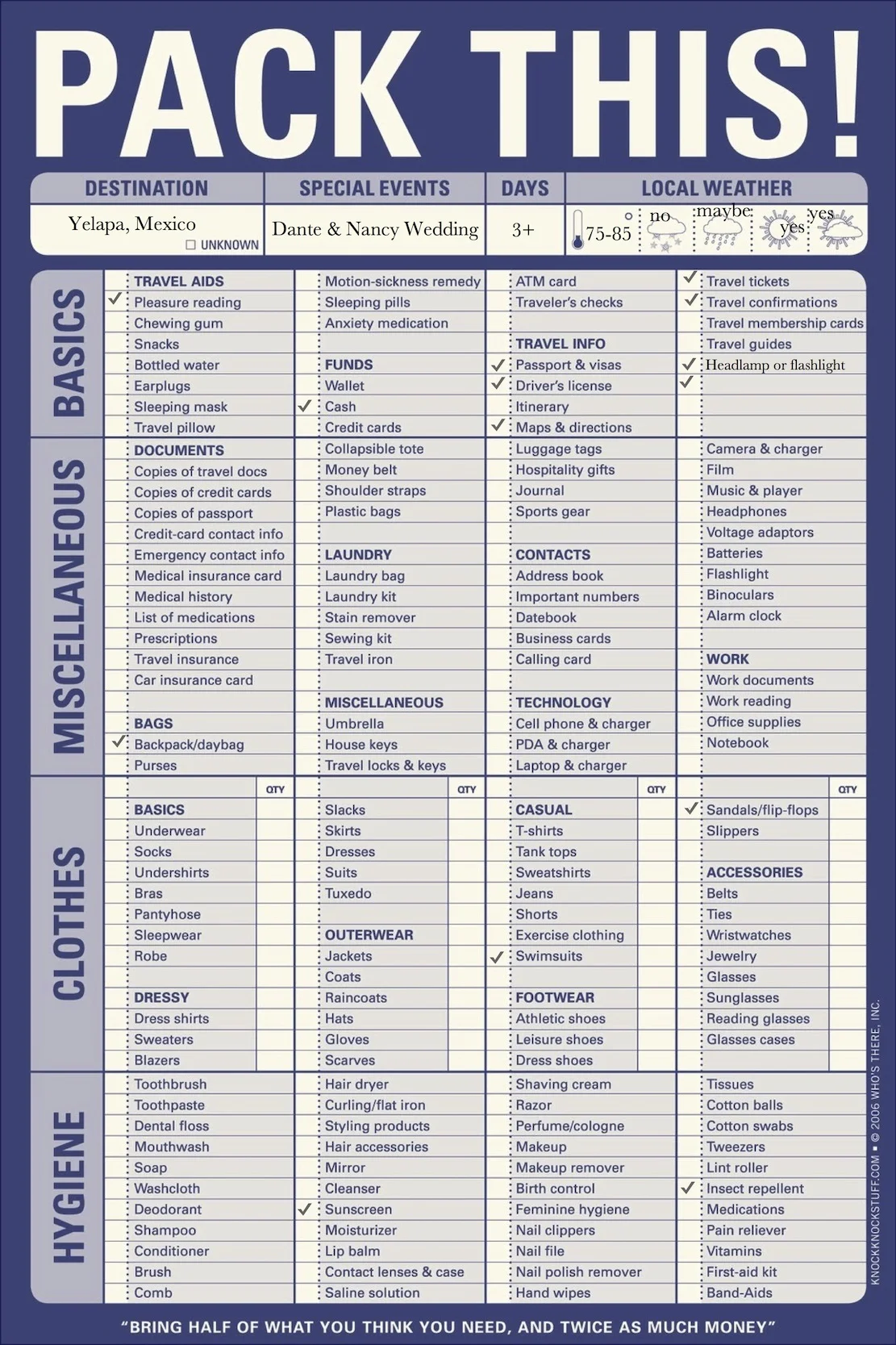 *Use this packing list to help make sure you don't forget anything. A few important items have been checked already, the rest is up to you!